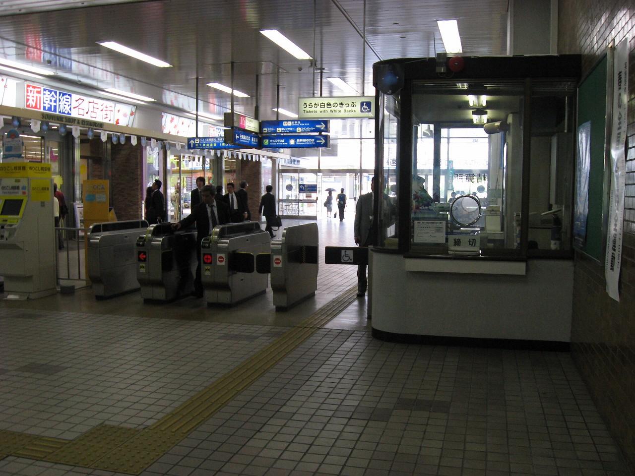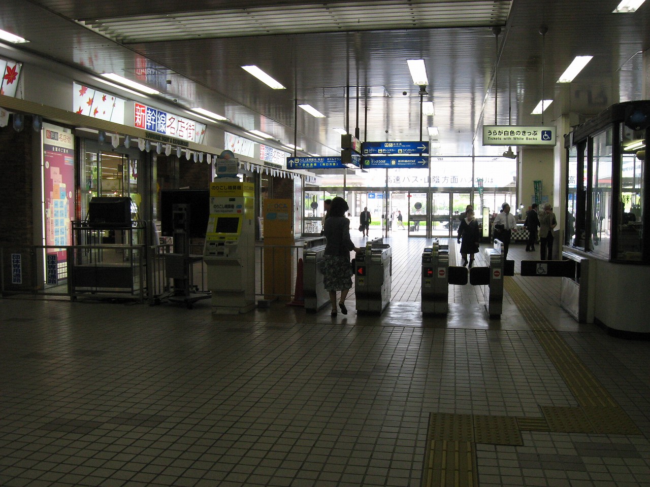 手前は乗換改札、右奥は改札外の新幹線改札。
