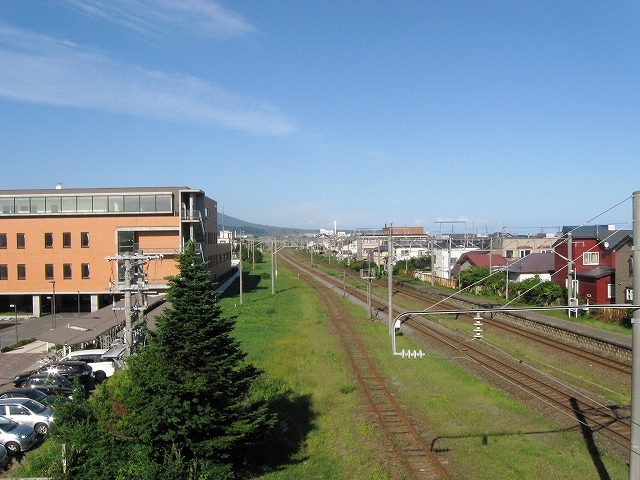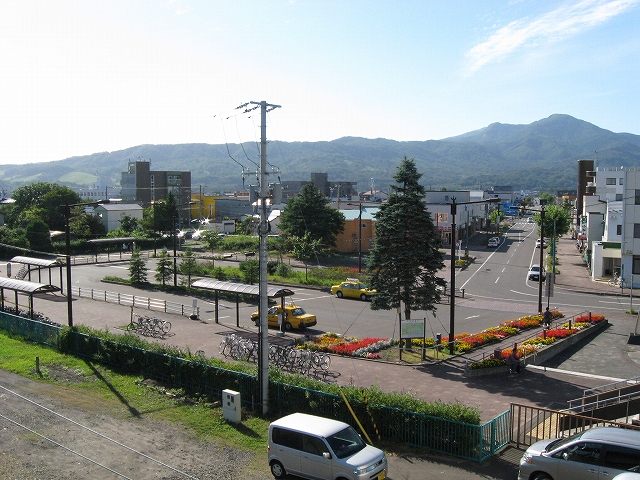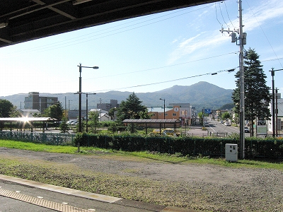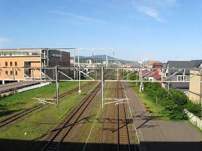 陸橋上からかすかに見える登別岳は、文化の匂いがして心安らいだ。温泉も湧いている。
