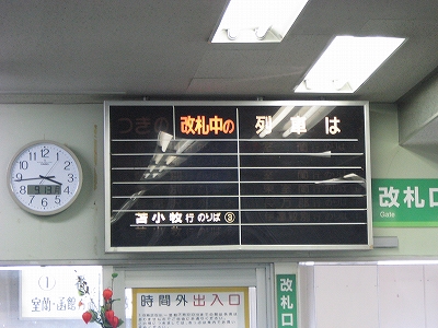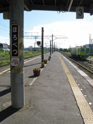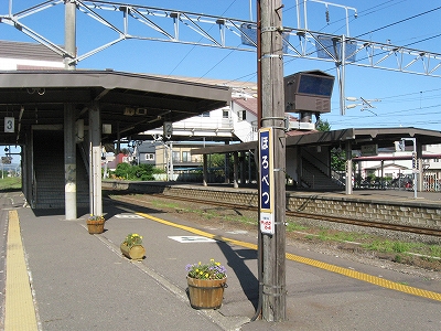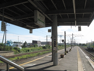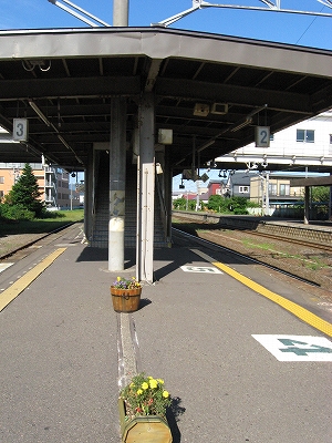 シャッポをかぶった初老の男性がしばらくホームにとどまっていたことを女性駅員に咎めだてられている。その言い方はいかにも蝦夷の旧国鉄人らしい権力的なものだったが、それをのらりくらり交わすところはこの駅の穏やかなお昼に似合っていた。ちなみにここはしっかりした列車別改札。冬季の通過列車の結氷飛散を考えてだが、そういう改札の感覚が根付いていて文化になり、夏季も行われている。