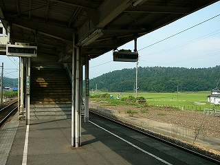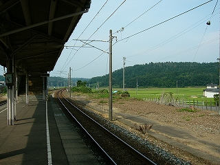 ここは芦原温泉駅の方から来ると、田園地がだんだん狭まってきて、それでもまだ開放感はあるが、何だかものさびしい、と感じていると、もう峠手前、というようなところの駅だった。