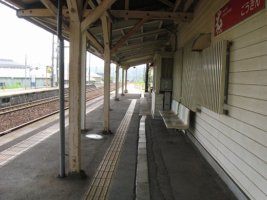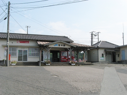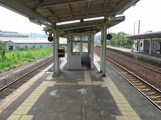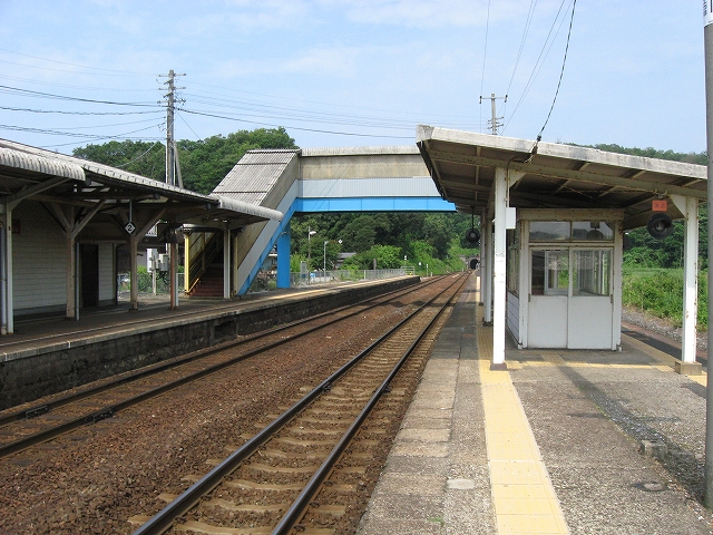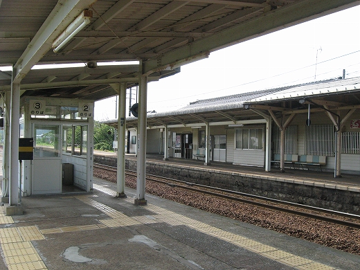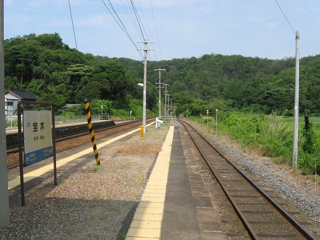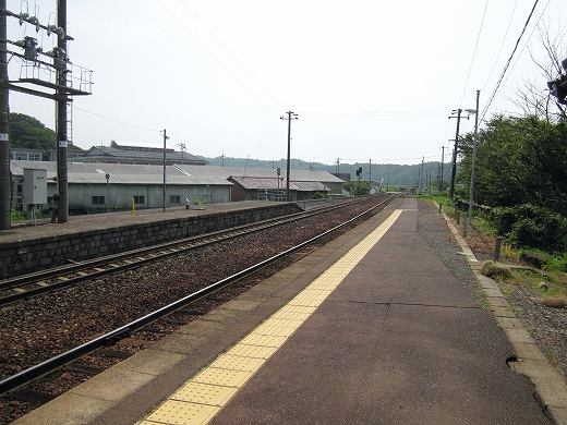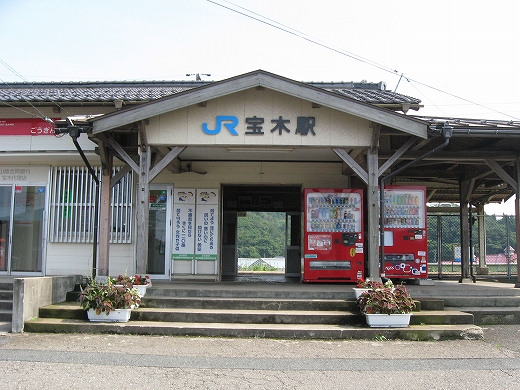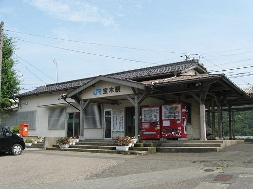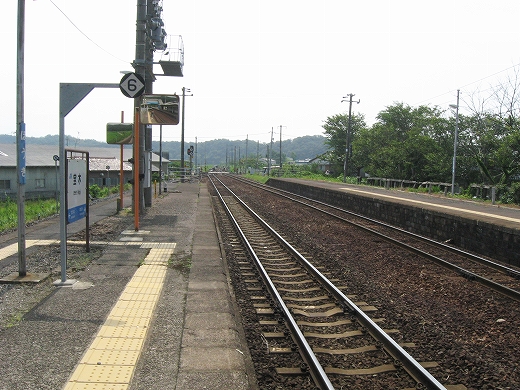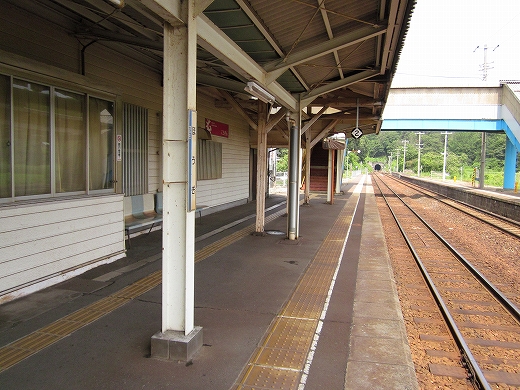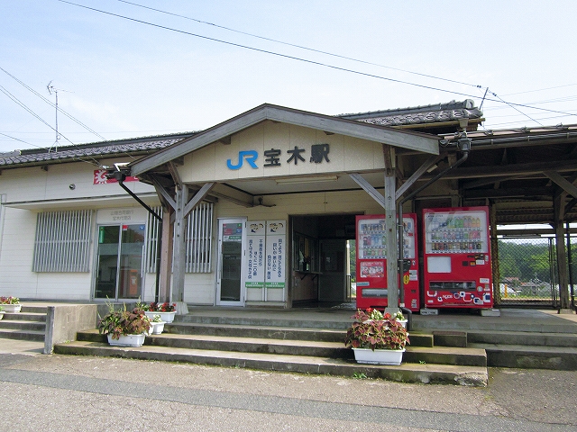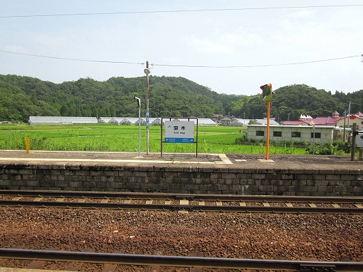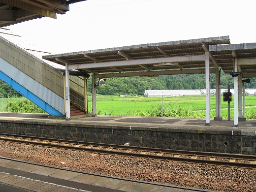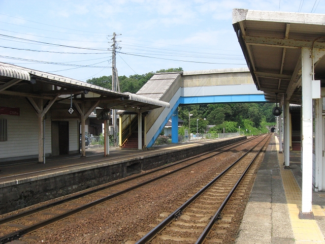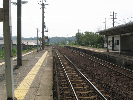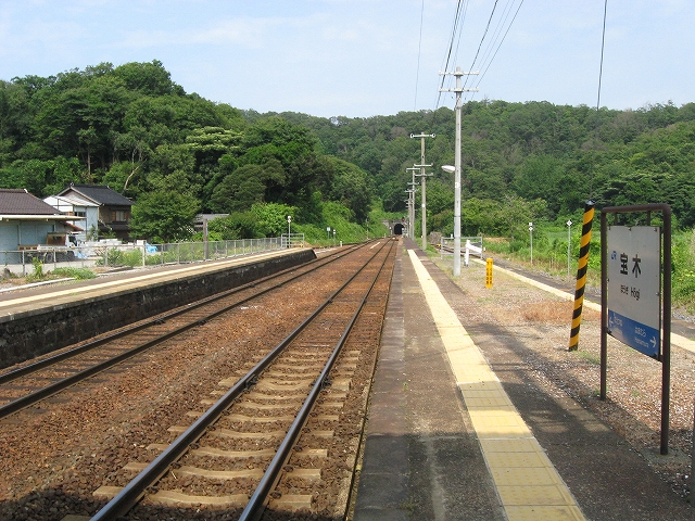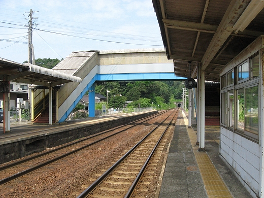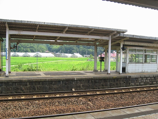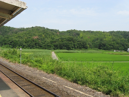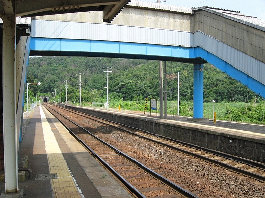 とつぜん鳥取平野は終わり、山がちなところを走るようになって、立ってドアの窓から景色を見ていた私は、心の中でひとりびっくりする。イメージとしてはずっと海岸沿いに平野がつづくのだが、じっさいはここからは沈降海岸に土砂が詰まったようなところで、海の近くを走っていてもトンネルやら何やらで切り抜けないといけないらしかった。「このままどこに行くんだろう?」と思う。汽車は一旦尾根を抜けて宝木に。しばらくはそんなことを繰り返す予想がついた。