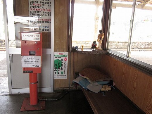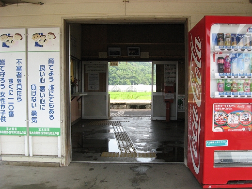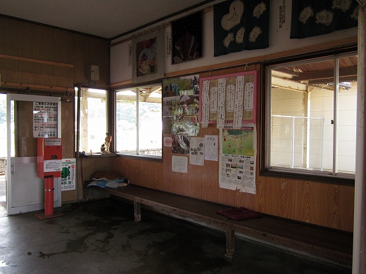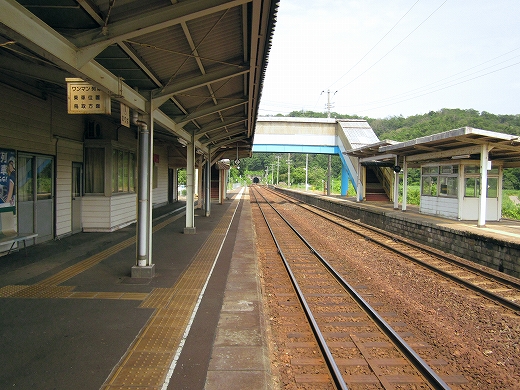 古い木造舎で無人でもおかしくない立地だが、駅員に捕まる。どこから来たと話がはじまって…なんでこんなとこに来たのか、と。順番に降りてともかく下関まで行く! といったが、たいして驚かず、ほお、と。こんなとこなんもないよ、というので、いいところもあるんじゃないですか、浜村とか、というと、なんでいま浜村っていったの? 私、浜村出身なんだけど。なんやこいつは、とすでに私は思っていたが、浜村は温泉や貝殻節で有名じゃないですか? と正しく切り返す。「そうだね。」 私は、じゃあ、と、郷土の民芸品のある爺さんの部屋のような駅舎から出る。