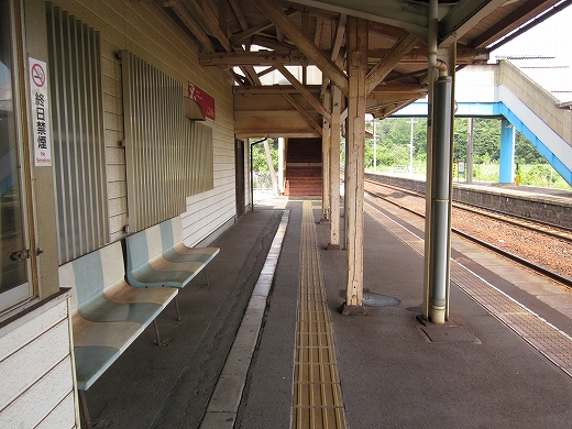 静かな構内にはあの水色と白のベンチがやはり置かれているが、鉄粉で赤茶けていた。