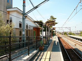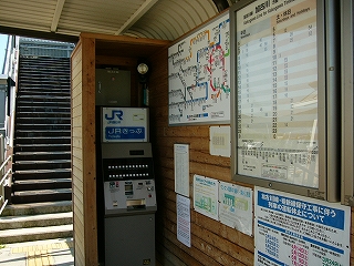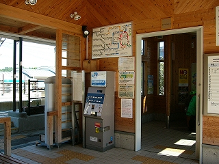 集落は特に駅を意識していない、というような駅前になっていて、古来からの住宅地のさなかだった。それにしては駅舎が木をふんだんに使って大きく造られていて、しかも裏にもこれとまったく同じものが造ってあったから、「これはかなりお金をかけたな…」。駅には結構予算が使えたのだろうか、集会場ぐらいにと思い切ったのだろうか、などといろいろ考えてしまった。ちなみに券売機も表、裏ともに置かれていて、これは新しいこういう種の駅においては、相当な張り込みようだと言える。そして元はなかった交換設備(信号、分岐機、ホームなど)も付けたというから、かっちりした正統な駅に出世したものだ。