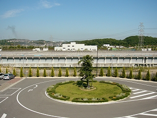 裏手のお手本のようなロータリー? 向こうの施設は下水道処理場。