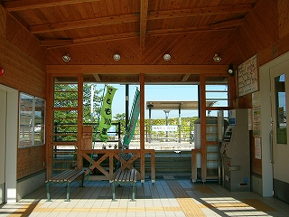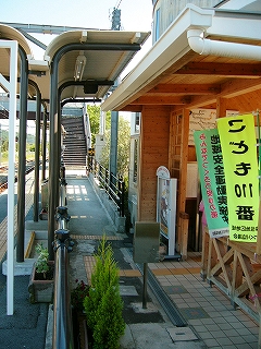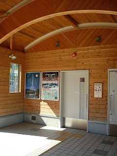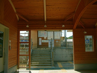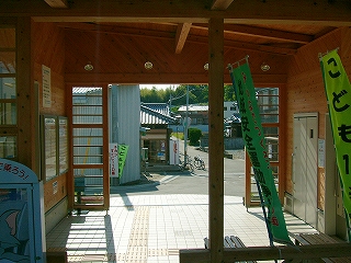 何人かの子供らと一緒に降り立つ。ワンマンなので車内で改札を終えた後、「ドアの横のボタン」を押して降りたのだが、そのときは駅舎の明るい木の色と外の空気が顔に心地よかった。