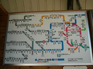 そういうわけで駅前はあまりよその人がいそうなところではなかったが、意外にも温泉の案内が出ている。その場では地元の人だけのもの、と察したが、そうではなく、実は新しく大きい施設だった。ここからコミュニティバスも出ている。泊りがけの列車旅の際はよく駅から入浴施設に行くので、こういうのができるとうれしい。