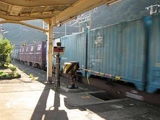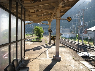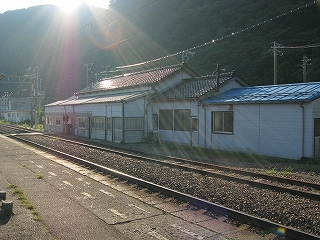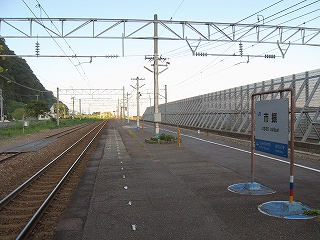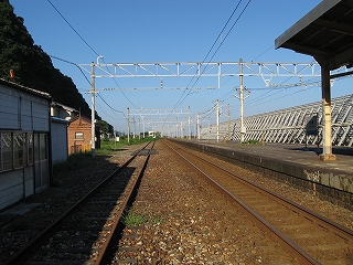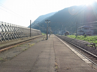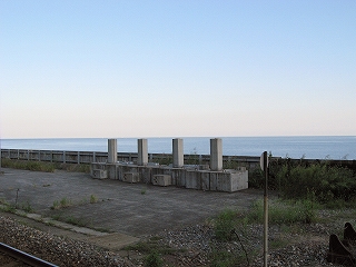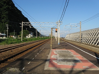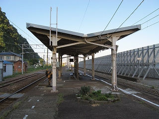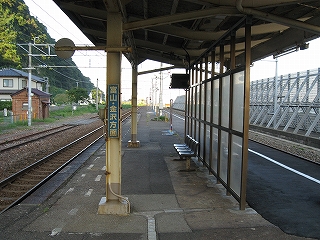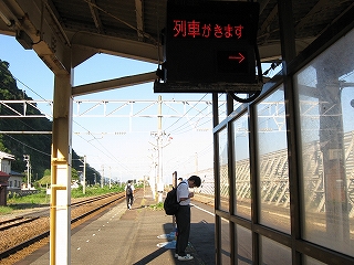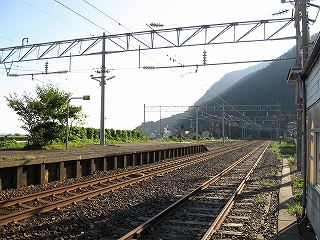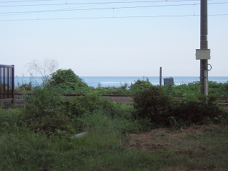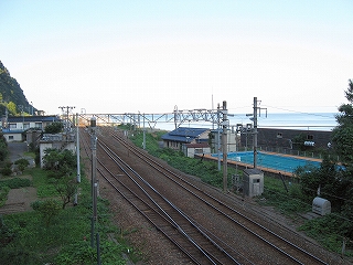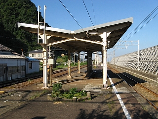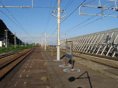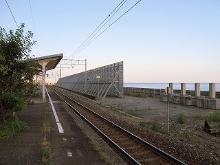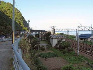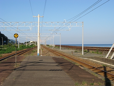 もうこのあたりは土地に余裕がないらしく、ホームも一つだけで上り下りを共用している。意外なのは国道が近いことだった。いい枝振りの松佇む静かな海辺の駅でなくて、山崖の直下を走り抜く大型トラックやダンプの音が、この駅と親密な関係にあった。