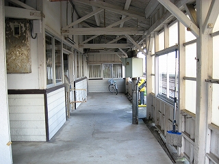 ホームから見た駅舎。これがおそらく雪国仕様。