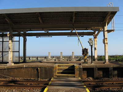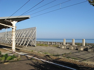 下り線。風除けの柵が季節風の強さを物語る。