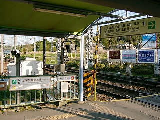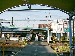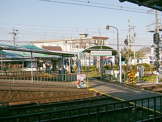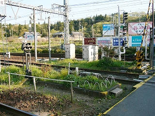 1番線ホーム前の踏切から駅舎方向を見て。