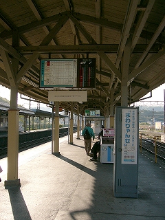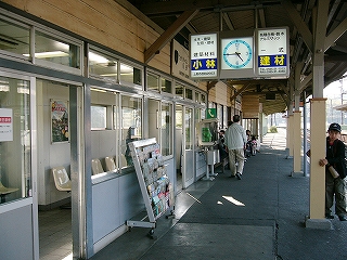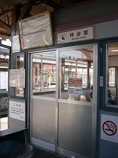 駅舎の中は狭い。自動改札が二つあって、 有人出札、自動出札でもういっぱいだ。 建物の大部分は駅務室となっている。 自動改札を通せない切符を見せようと窓口を覗くと、 駅員が上の人と談笑していた。リモコンで扉を開けてくれる。 また話に戻っていった。