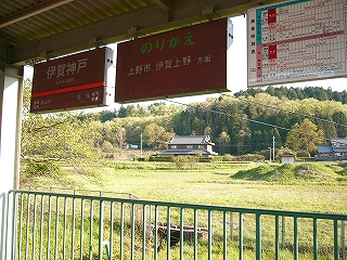 伊賀神戸に着くころ、小さい車内に伊賀線への乗換案内が入った。