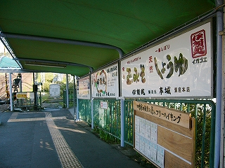 駅の裏の風景。駅名標は焦げ茶に塗りたくられていた。