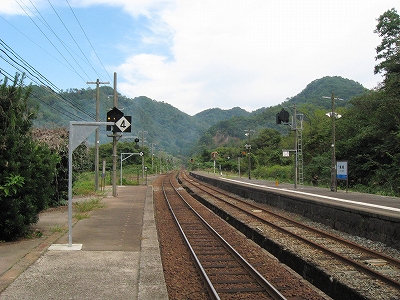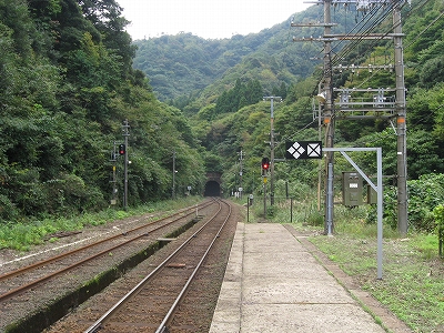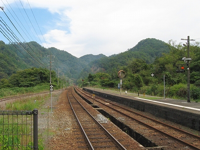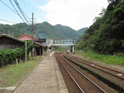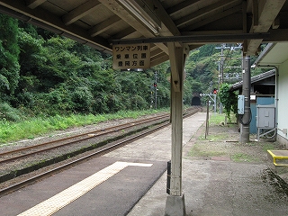 中で待つのはいやな感じだったので、外に出てホームで待った。といってもそこも山による圧迫があり、ここでの時間は少ないにもかかわらず「早く列車が来ないかな」などと心の中で念じていた。