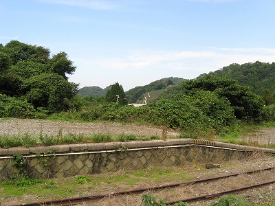 旧貨物ホーム。奥には治山工事らしきものが見えた。