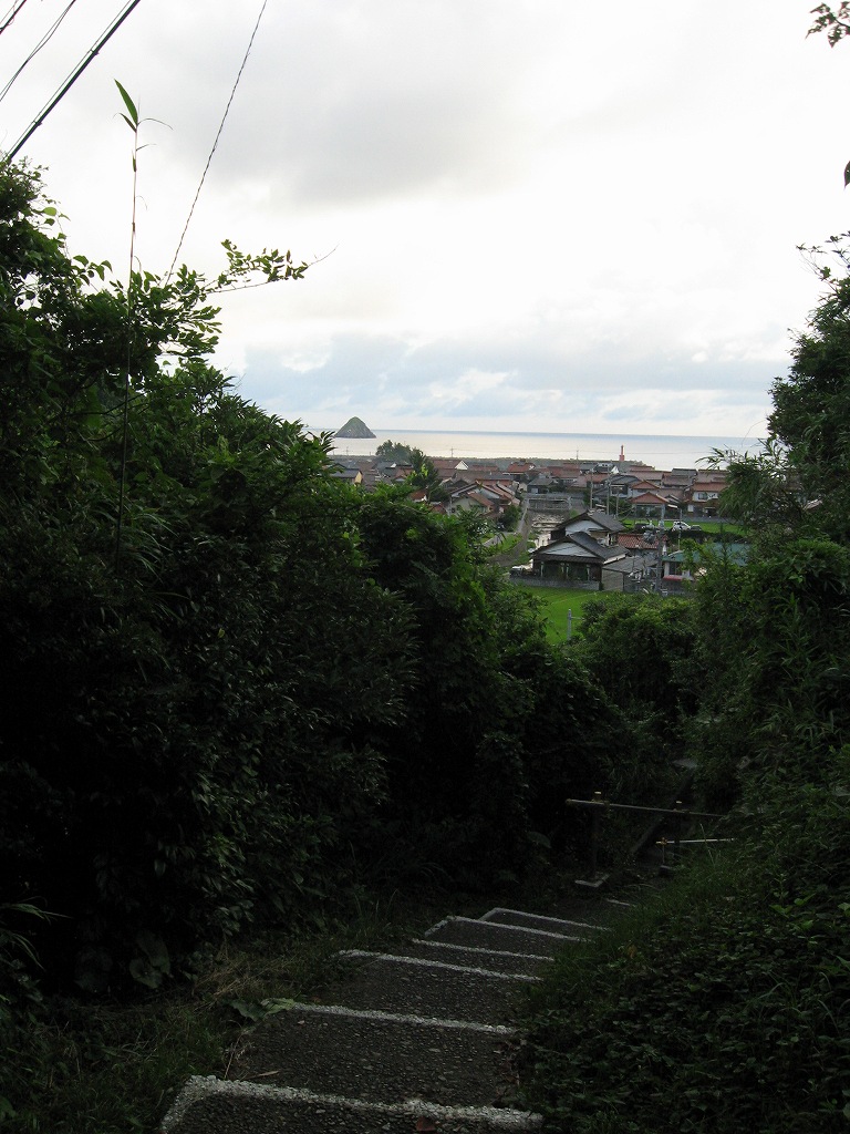 駅からの緑に囲まれた長い下り階段は、遠くはかなげに海と集落の眺望がいい。確かにあの夏の日、自分はここを登ってきたはずだ。