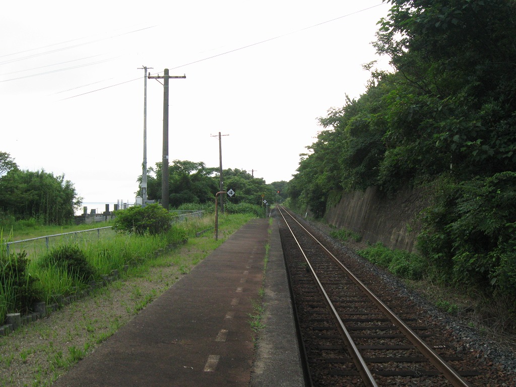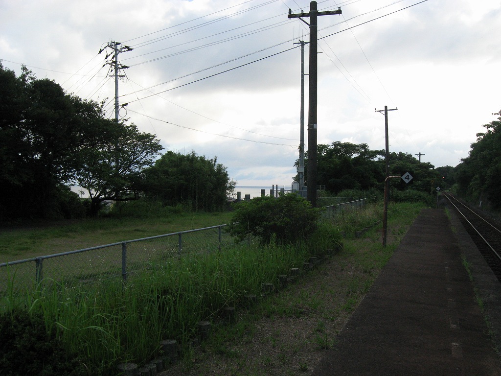曇っていた。どうも山の中腹にある無人駅のようで、いやというくらい草の匂いと虫の声だった。頭の中を草むらの中に突っ込んだかのようである。腕とふくらはぎに蚊が群がってきた。かすか遠く、木陰の隙間から、儚げに白い海が見渡せた。