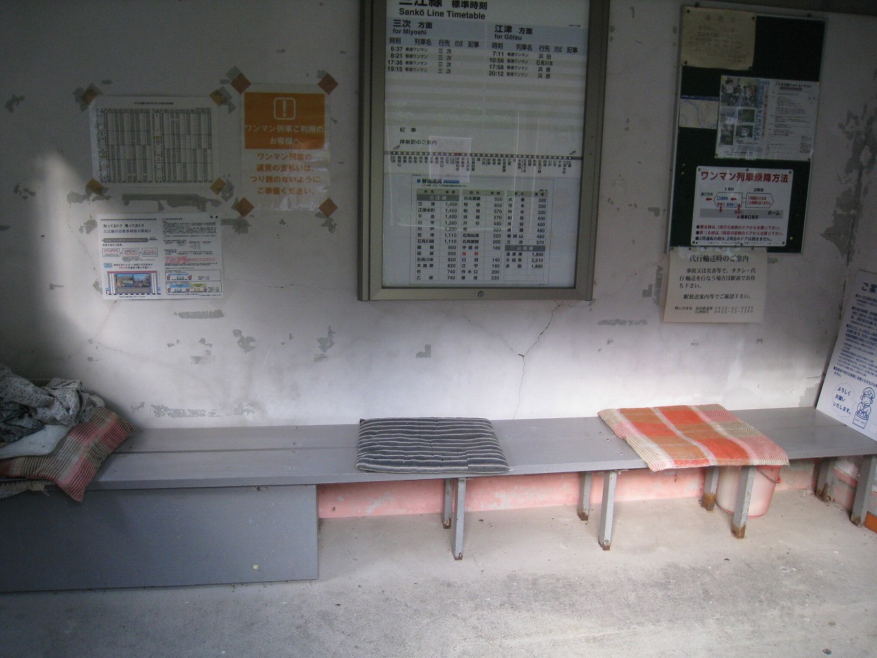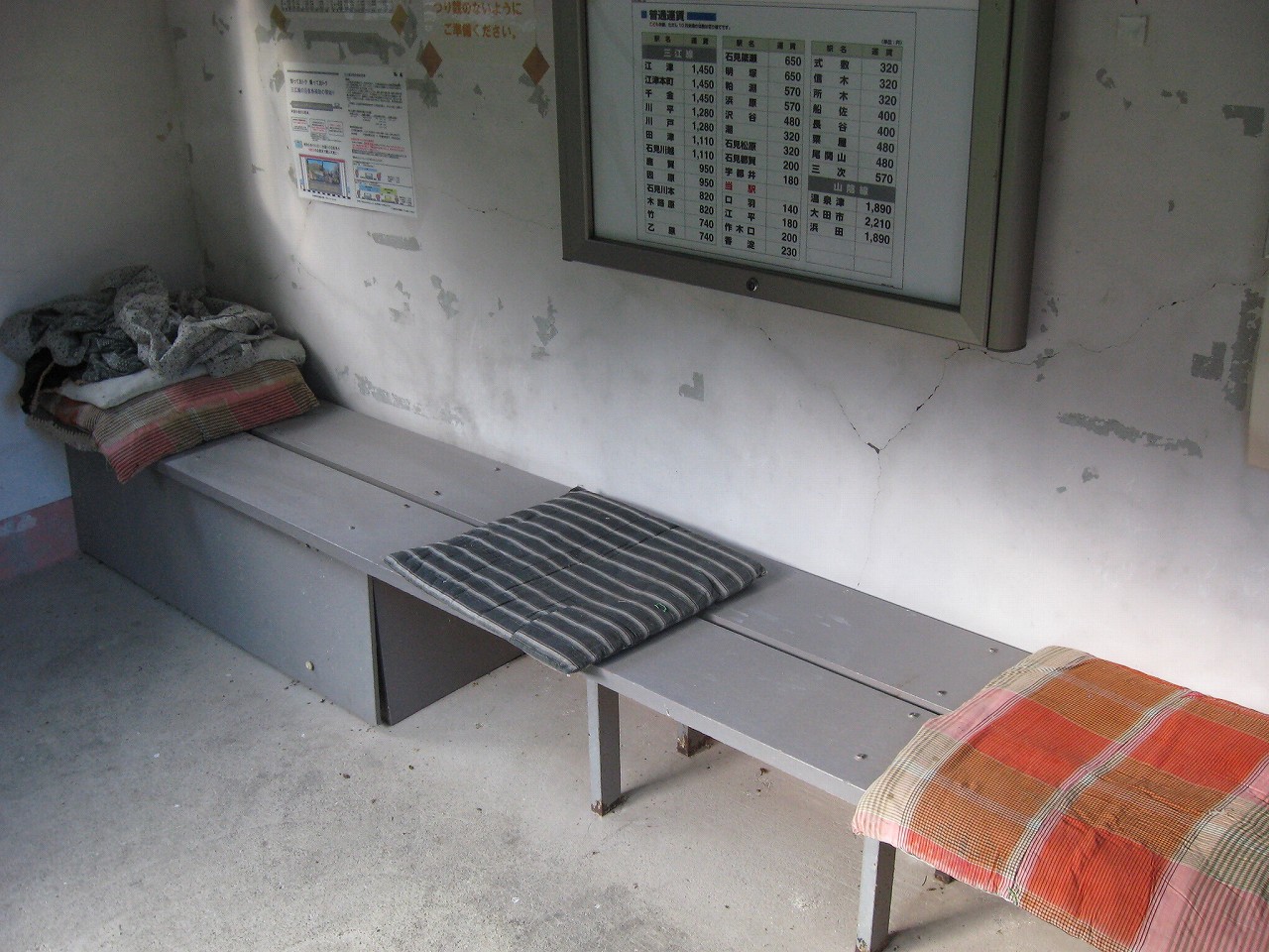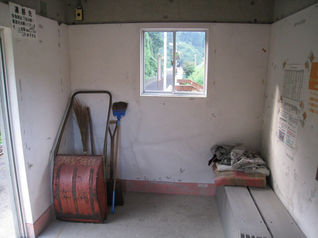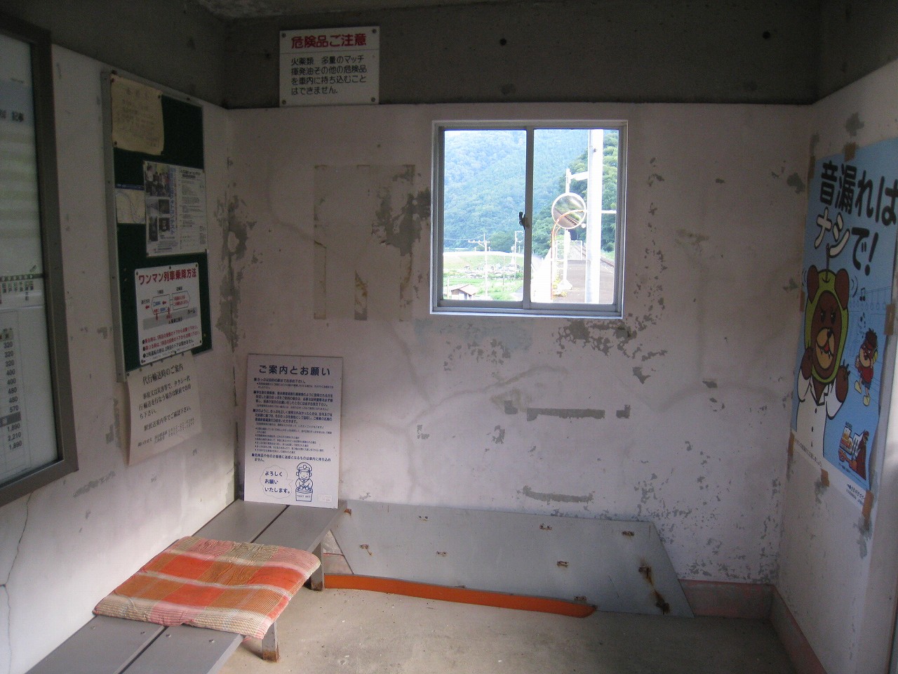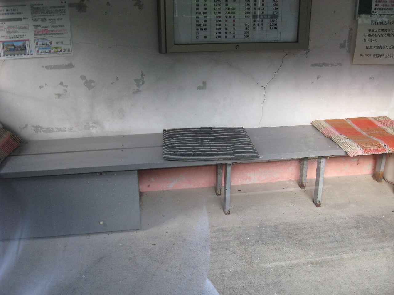 線内の待合室は室内が塗装されていますが、決まって塗膜が剥落しています