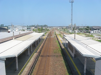 生地は特急が停まれるくらいの大きさの駅なのに、ホームや駅舎はからんと音を立てるように何もなく、ひと気もなく、また飾りけもなく素朴で、それらが何よりも不思議だった。規模を間違えて建てたのかとも思った。潮風で傷んだラッチを抜けたら、駅舎の中はやや狭かったので、やはり元から格下の駅なのか、などと、この駅ののことを詮索した。