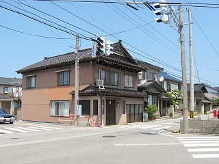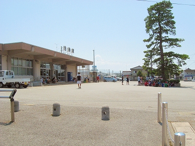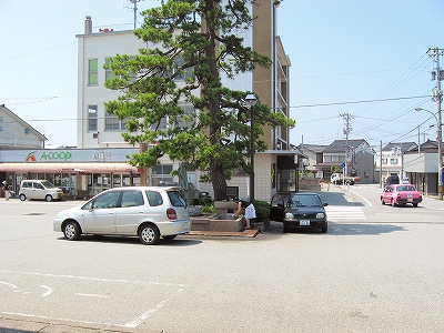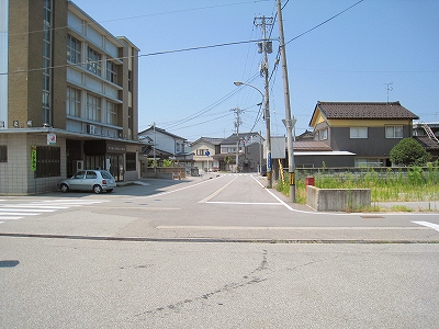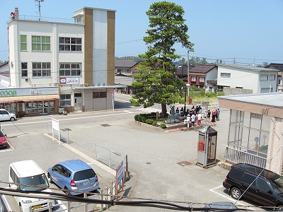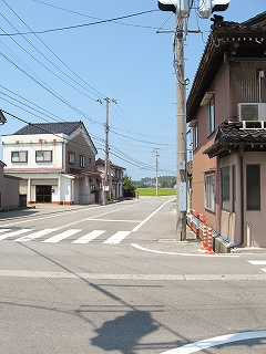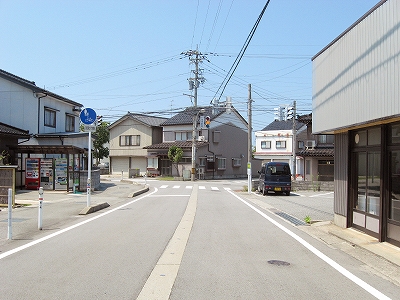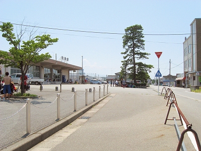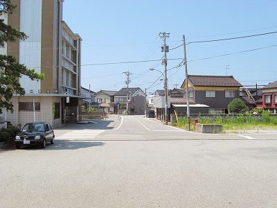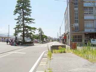 日本海方。駅付近にしては道は狭めだった。
