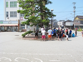 そして駅前には幾つかの無機的な公共施設と、泉が一つ、取り残された。立山の湧き水。学生らがタオルやらシャツやらつけたりで好き放題に使ったので、どうなったかわからないが、その後は地元の車の立ち寄ること絶えることなく、二個、三個の白いタンクに水を汲んでいく。自分も汲もうと思ったのだが、隙がないほどやって来るので、「なんでそんなおもらいなんだ」と、訝しがる。学生がいたのをみて後回しにしていたのだろうか。しかしまるで井戸代わりで、炊事はぜんぶこの湧水で賄うほどとみえるほどだ。