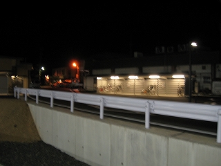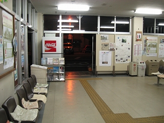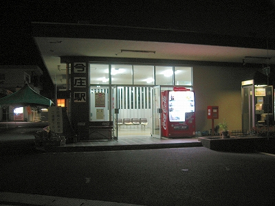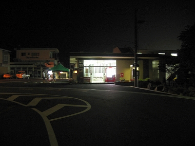 とりあえず駅前に出ても、よもは針葉樹の山の夜、駅名の入った建物がしいんと明かりを灯しているだけ。稼働しているのは飲み物の販売機のみで、「もうすぐ営業終了ですよ、