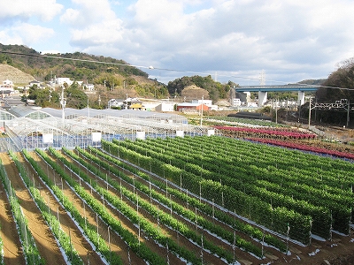 印南市街は港の方でここにはない。街も回りたいが、それは別の機会にしよう。どうせ今回だけで紀州を味わい尽くすことなんてできないさ。近くでハウス栽培をやっていて、きれいなので覗くとブロッコリーだった。もうすぐ咲いてしまうんだ。固い蕾をあちこちにお団子のようにつけた菜の花の一糸乱れぬのは、それ自体が一つの街のように見えた。そしてその広がっていく畝も。