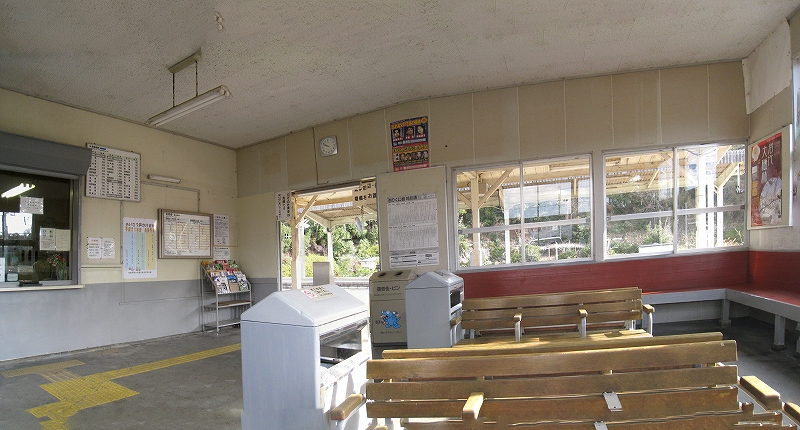 それにしても待合室はほんとに寒い。改札も外もドアが開け放しで、待合室内は外気温とまったく同じか、窓越しの日当たりのためさらに寒く感じられる。こういうところで待たされるのは北國の人は信じられなさそうだった。なんぼう南国だといって風は冷たく、せっかくの待合室だからドア閉めてストーブ入れようよ、と。しかし南国の文化的気負いを私はそこに見る。それは逞しさでもあろう。