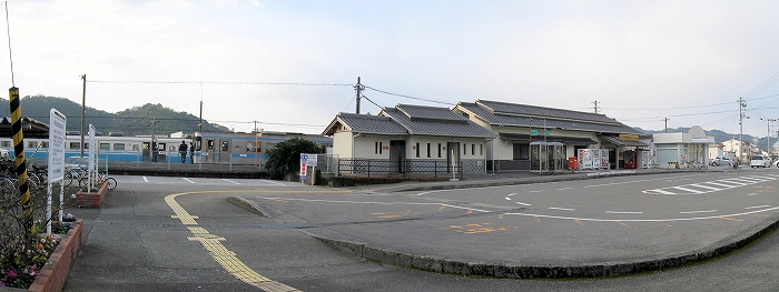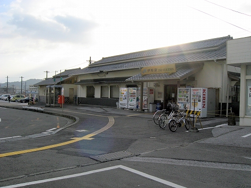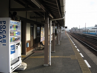 駅は新しかった。一般の瓦屋根の上に、さらにひとまわり小さく瓦屋根が被せられているのが特徴だった。お隣の新築のトイレも同じ屋根をしている。駅出入口にだけこじんまりした看板を掲げていて、派手さがなかった。しかし販売機はホームにあるのと合わせて7台。カップと缶のコカコーラ、キリン、伊藤園…こんどここに降りたら何かほしいものはないかまた覗いてみよう。