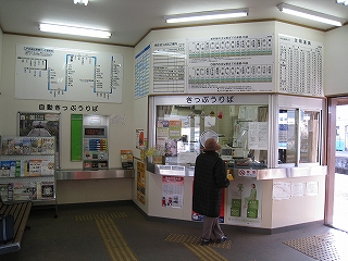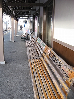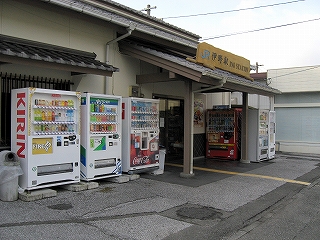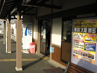 駅舎軒下前にて。左手は駅中として活躍する販売機。