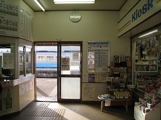 改札口は、建物の出入口みたいで、委託駅風。窓が開いていて、人に続いて切符を見せると、大きな顔を微笑ませた40歳くらいの女性だった。そういうわけで、伊野駅に降り立ったことを思い出すと、この人の顔を思い出す。運転士が建物の奥に入っていくのが見えた。詰所になっているようだ。建物はやや大きいが、待合スペースは狭かった。しかし色とりどりのKioskが入っている。アイスクリームのケースの横にはここで採れたらしい青果を置いていた。何か買いたい。でも、次は近くの高知に行くのだった。この先、窪川まで行き、くろしお鉄道なんかに乗るのだったら…。