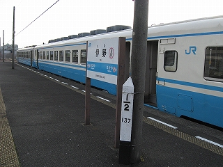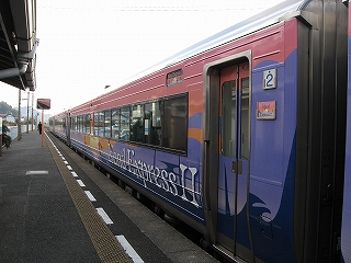 1番線に車体に絵を描いた妙な列車が入ってきた。長編成だ。通過するのだろうと思ったら、なんとここに停車するみたいだ。不思議な気がしつつ見守った。停まってから、がらがらエンジン音を鳴らす車体に近づくと、車体にはIsland Expressとデザインされてあった。こんな車両は知らなかったが、団体用の編成だという。それでも、四国でしか見られず、しかもあまり見かけられそうになさそうな列車だろう思っていたから、なんだか急にありがたくなった。Islandって、四国島のことなのだろう。そう思うと、四国はなんだか楽しそうだ。