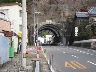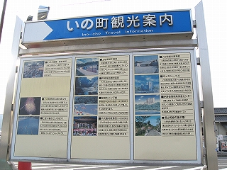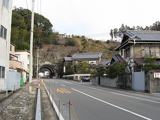交差点の高知方では工事のためか、軌道が道路を荒っぽく掘っていた。刺激的な感じなのだが、その道路を渡ると、さっきから気になっていた不思議トンネルにもう近づくことになった。そこにだけほっそりした尾根が横から伸びてきているらしく、それを短いトンネルで抜けているようだ。扁額によると琴平トンネルとなっていた。低い尾根上には畑か林のようなものが見えていた。あそこに上れば気持ちよく見渡せるだろう。この尾根の向こうに加茂山という里山があり、上りきれば伊野の町と仁淀川が壮観だという。駅前の案内板も、この加茂山を詳解していた。