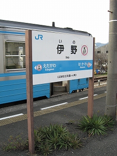 機械的な明るい女声の放送で、列車内に伊野の名前が連呼された。朝8時半過ぎ、列車はまもなく伊野駅構内へゆっくりと入っていく。