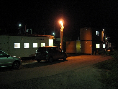 ホームからの鉄の階段をコンコン降りたとこすぐにプレハブの事務所があって、明かりがつき、賑やかな人の声も聞こえる。