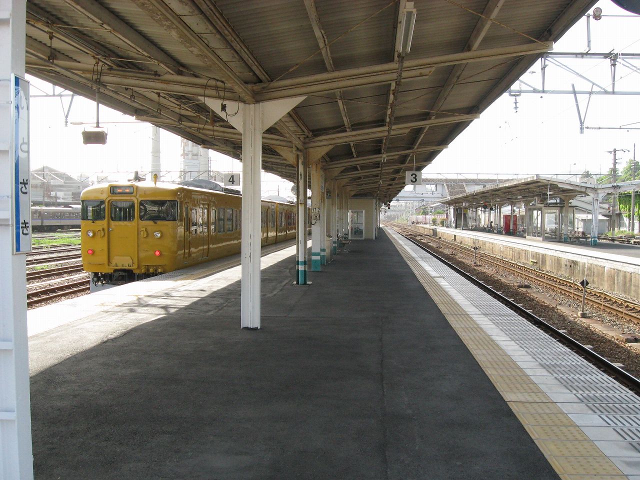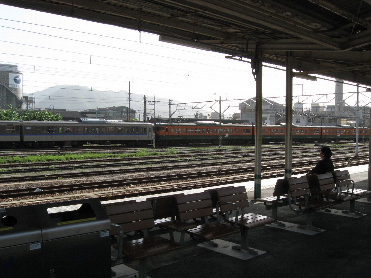 ホームも何もかも広くて古ぼけてはいながらも大きいのに、この人の少なさに首をかしぐのは、山陽新幹線の開通かあまりに昔過ぎたから。今なら並行在来線として手打ちにされた「かつて賑わった大駅」。山陽本線はそうした残酷な処置を受けずに済み、その当時ありうべく発展と成長とともにあって、正しく降格された本線として、美しくその衰微をたたええつづけている。
