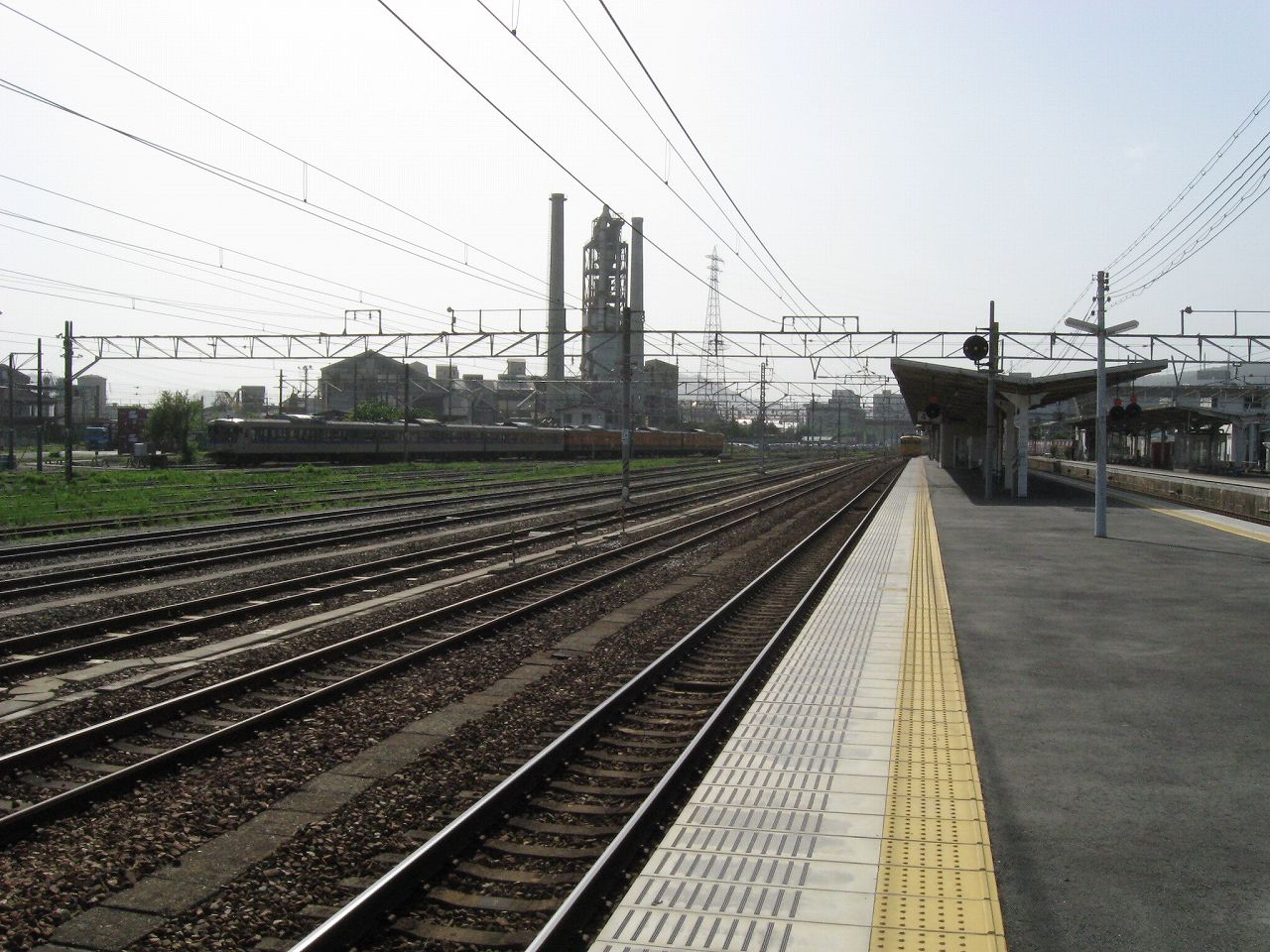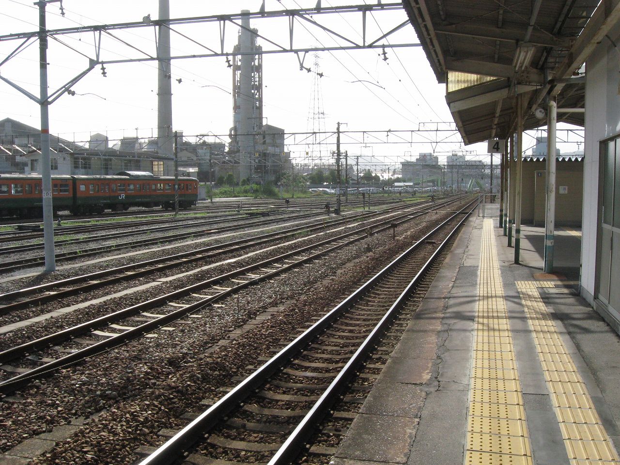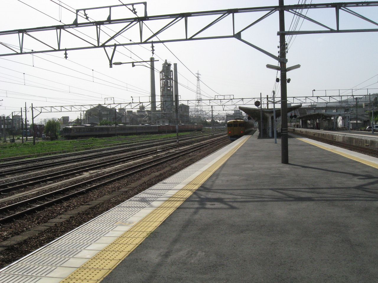 広島方。旅人を満足させるに十分な山陽のコンビナート的風景が見られる。