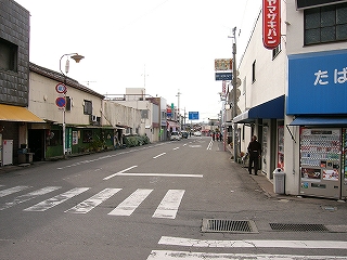 駅を出て右から始まる本通り。歩道がなく難渋しそうだ。