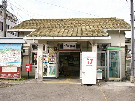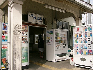 駅舎は道の脇に狭そうに立っていた。あの忘れられない灰緑色の屋根が、ポーチにまで下りてきていて、出入口の覆う感じになっている。雪国にはまずありうべからざる造りで、西国らしいところだった。その軒下に、アイスと、カップ式と、缶飲料の自動販売機、計3台も入っていた。もし駅の利用者が少なかったらこんなものもなく、翳りがちなポーチの中で岩出駅、との表示がややいかめしく見下ろしていただけかもしれない。なんというか、街らしかった。駅舎へはぽつりぽつりと人が入っていき、たまに飲み物を求めるために出てきたりと、出入口や駅舎内は人影の絶えないときもあった。この町にも何かあるのかな、と、脇のぴかぴかの観光案内板を見ると、周りの山に比べて関西国際空港がやたら大きく描かれていた。関空に絡む開発でこの市の受けた恩恵は少なくないのだそうだ。
