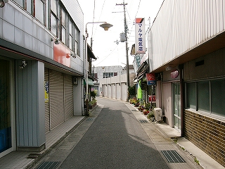 道の突き当たりにとても小さいアーケード街の始まりのようなものが見えていたので、期待していたが、近づいてみると、派手な看板のついた建物が通り抜けになって、裏庭に出るだけのことだった。すこしがっかりしながら道なりに右折すると、人影のない寂れた道、店らしくない四角い建物が、軒並みシャッターを下ろしていた。しかし決してシャッターに落書きがあったり、凹んだりはしていない。もともと岩出駅周辺は岩出市のはずれだそうで、そのまま引き返した。