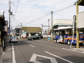 駅から出てまっすぐの道。バスの停まっている場所が
