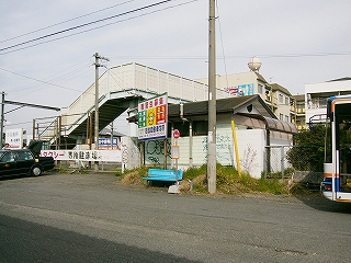 バススペースを覗いてみると、スプレーの落書きがあった。実は駅舎の玄関口の柱にもあって、ちょっと妙だった。下井阪にもあったが、ここは市の顔となる駅なので、変わってほしいものである。駅舎に近づきつつあるころ、やっと、この辺は整備に着手していないところなんだと気づいた。そういえばバスも広場やロータリーに停まっているわけではない。ふいに、昔の駅前の形態が活きている姿に、いま出会っているのだと思えるようになった。といっても、一新を望んでいる町の人はきっといるだろう。粉河はもう終わっているし、ここももうすぐかもしれない。
