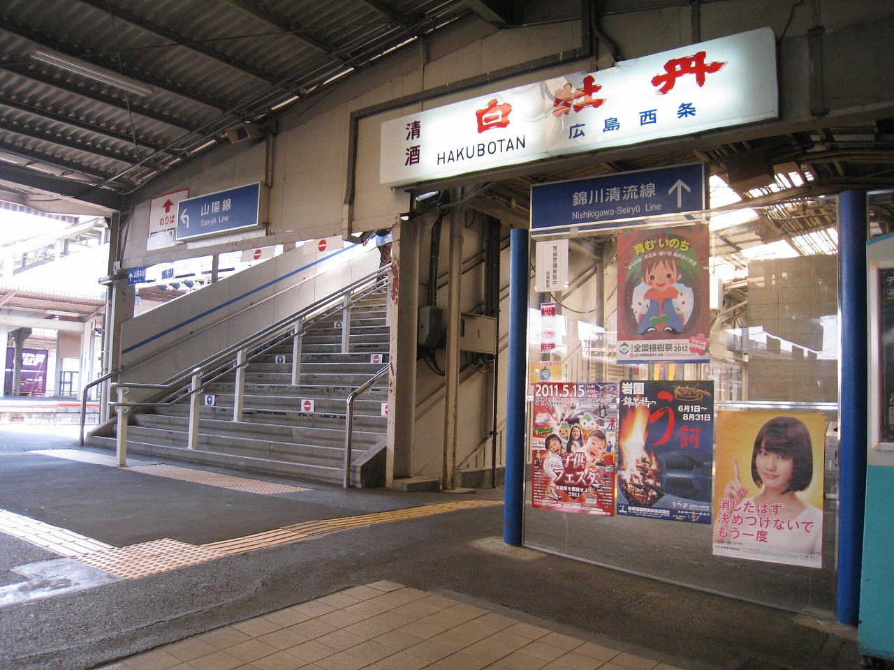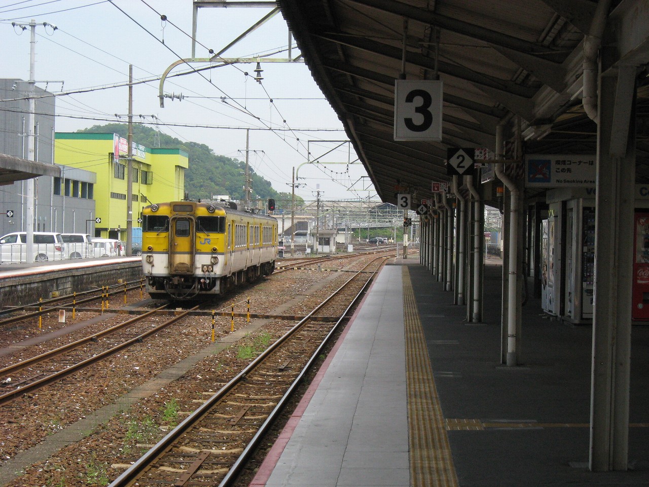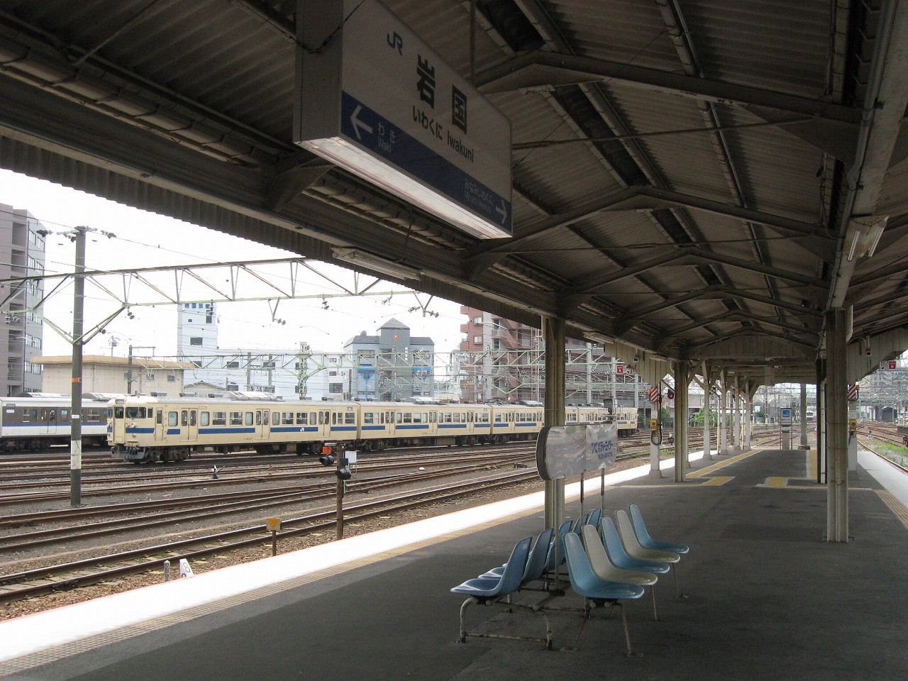 ボロボロの車内でガタピシ揺られながら、煙突からの煙か薄曇りのせいでモヤがかかったような操車場や工場地帯を見つつ、錦川清流線の案内や、それから「岩徳線、玖珂方面、お時間少々空きまして…」と、1時間の列車を案内するのを聞きつつ、「本日もJR西日本をご利用くださいましてまことにありがとうございました、岩国、岩国です」と締めくくられるのを聞くと、山口に入ったなぁと思うことしきりだった。長い芸州を抜けてきたのだ。