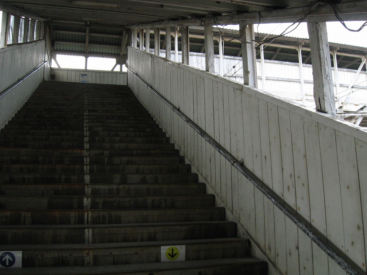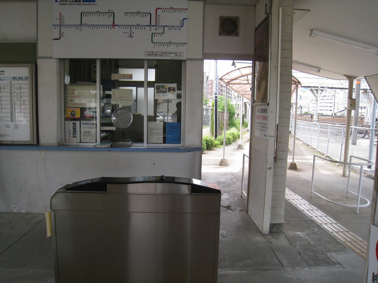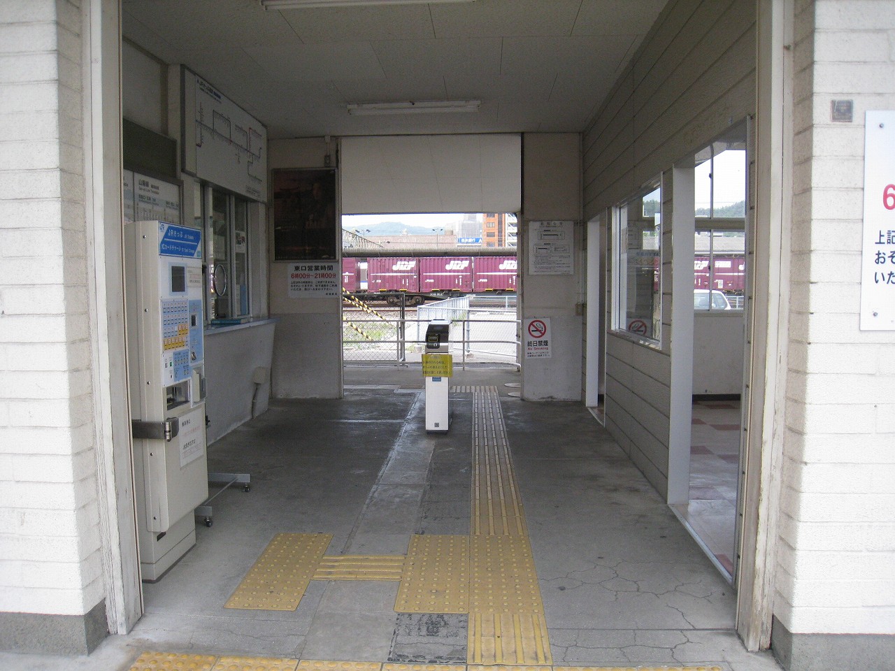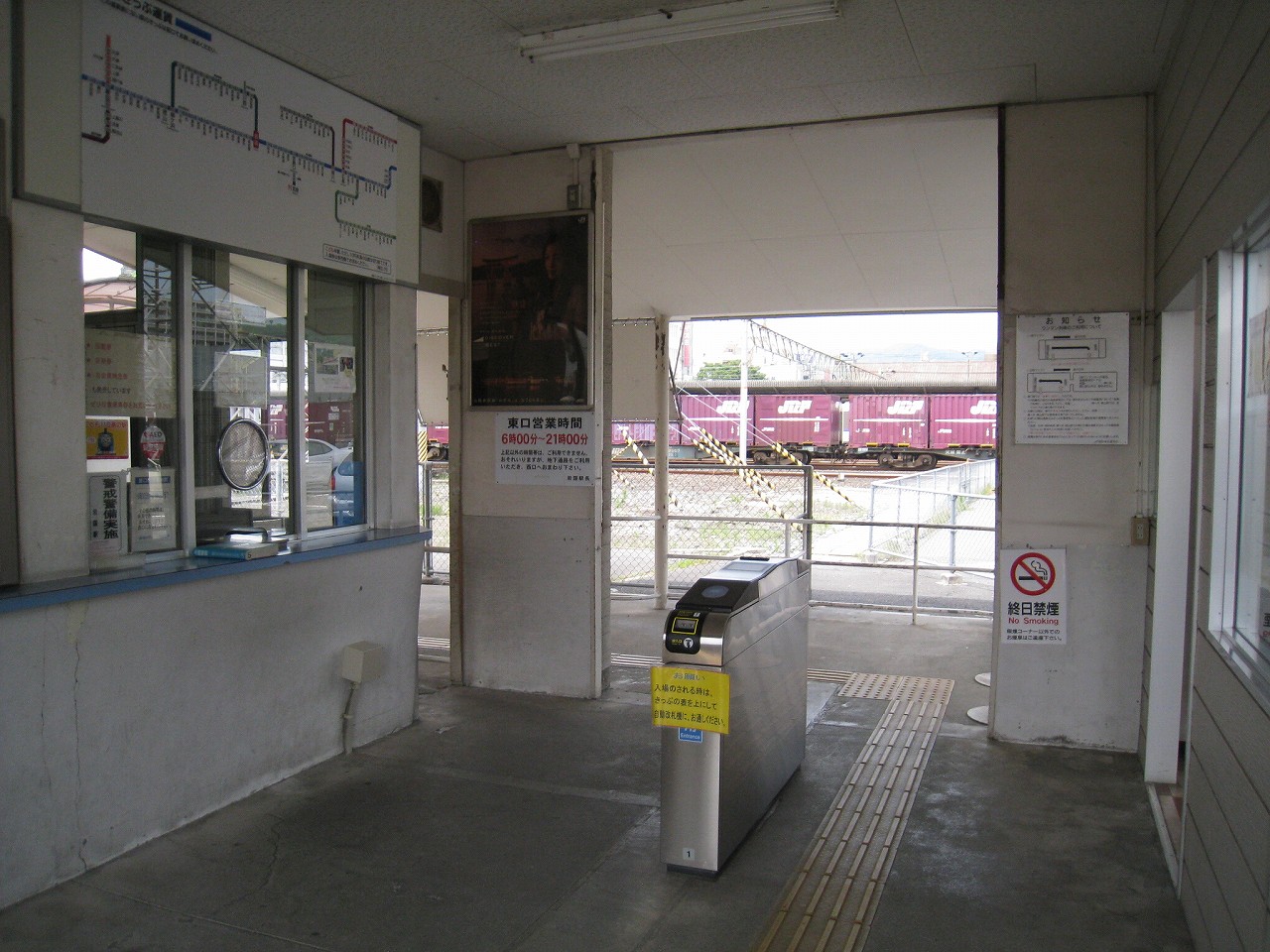 長い陸橋を渡って、工場側の駅舎にやってきた。ブロック積みで、あちこちに駐車場と貨物があり、窓口には一人が詰めていて、いかにも興味なさげに、けれども気さくに、きっぷを見て客を通していた。極めて質素で、現状にちょうどよいもののようだった。