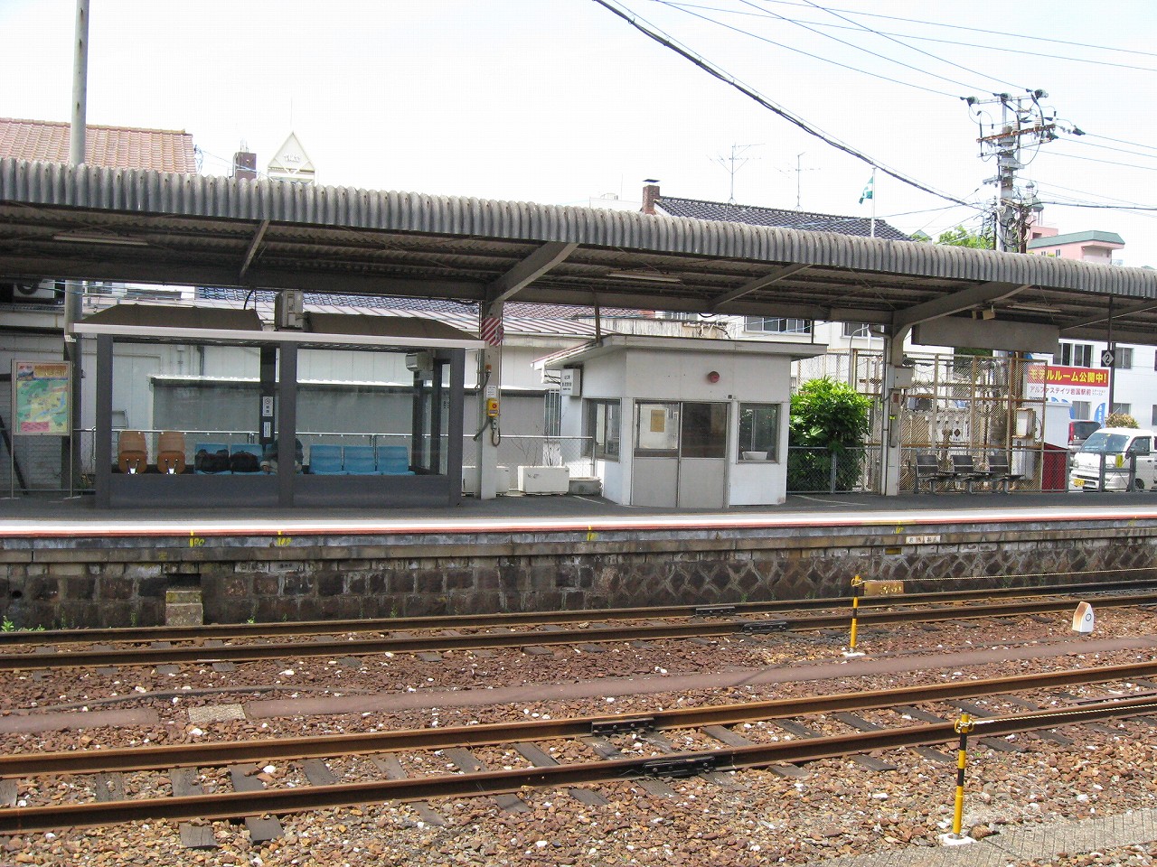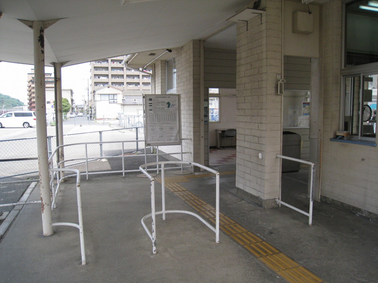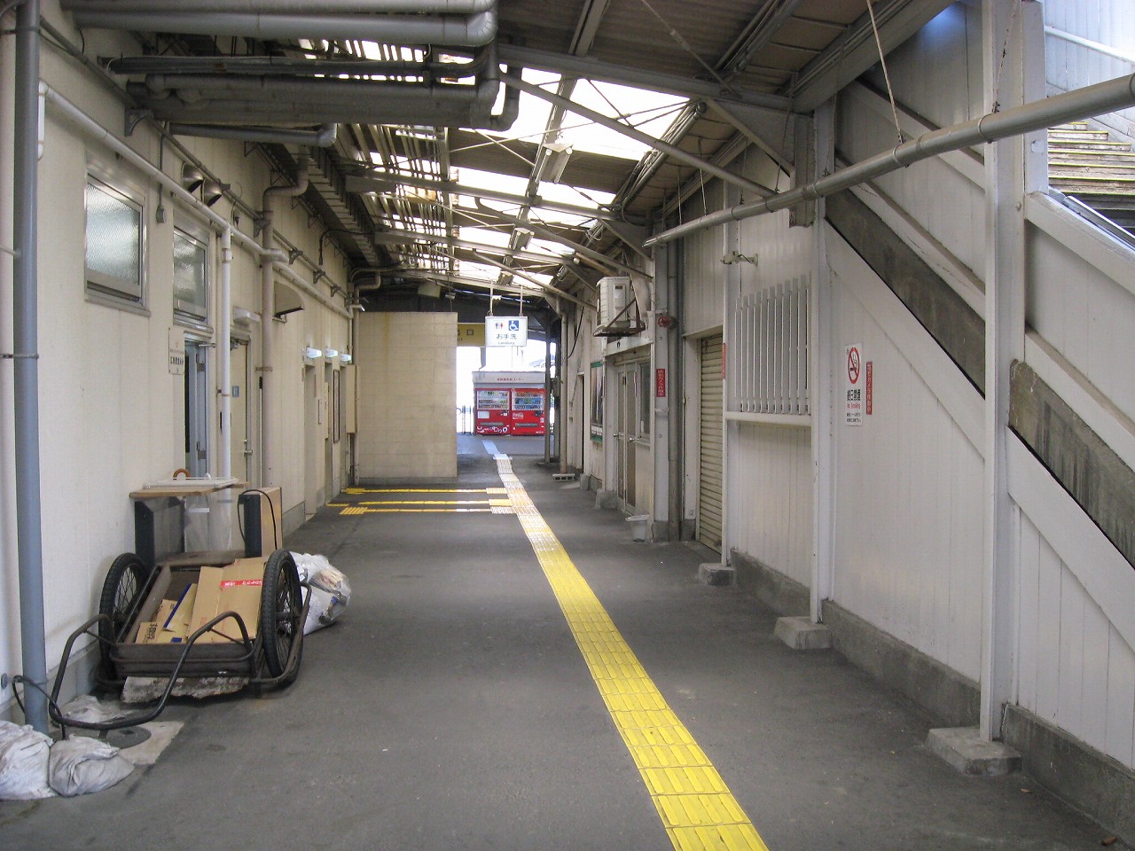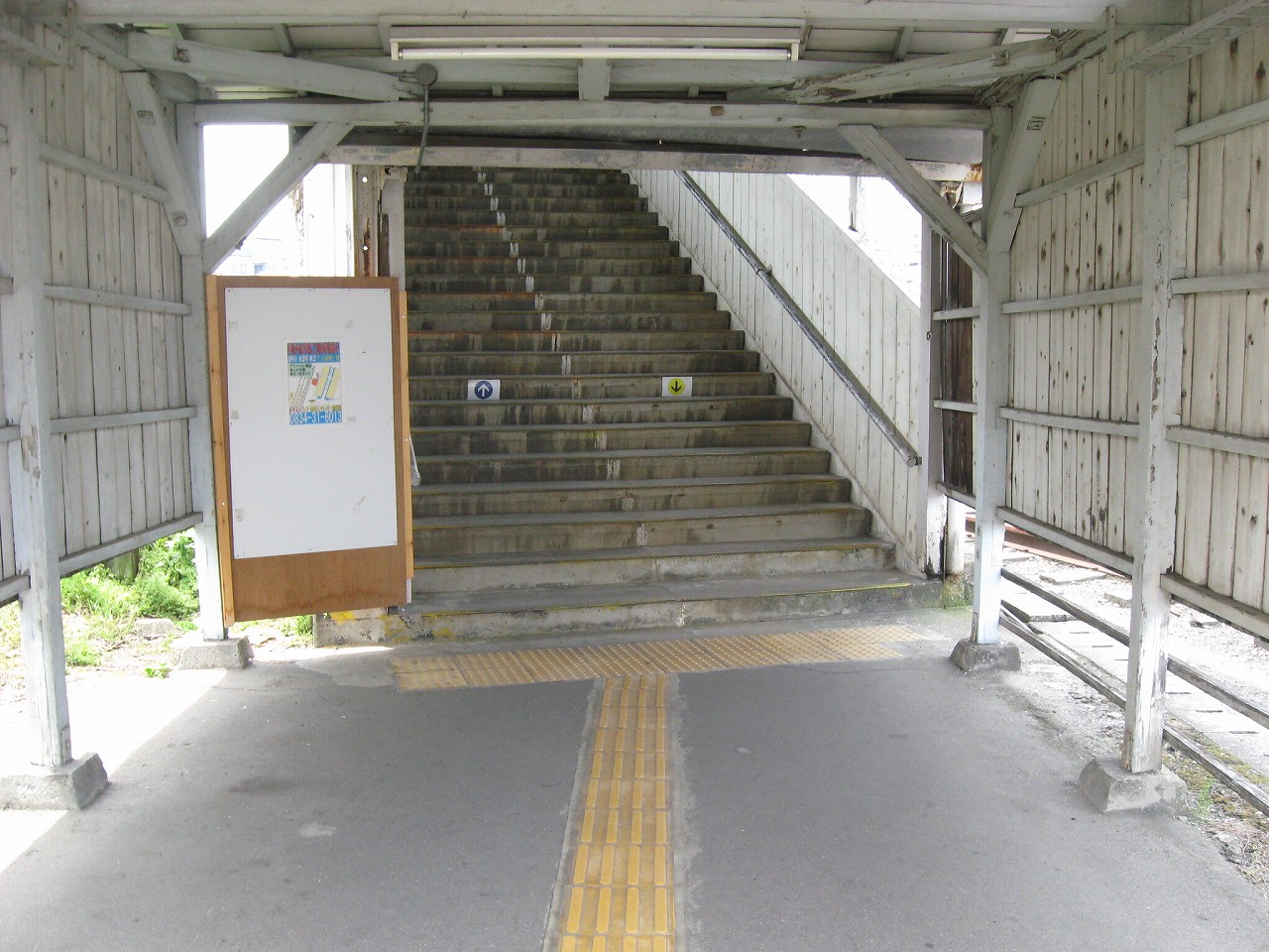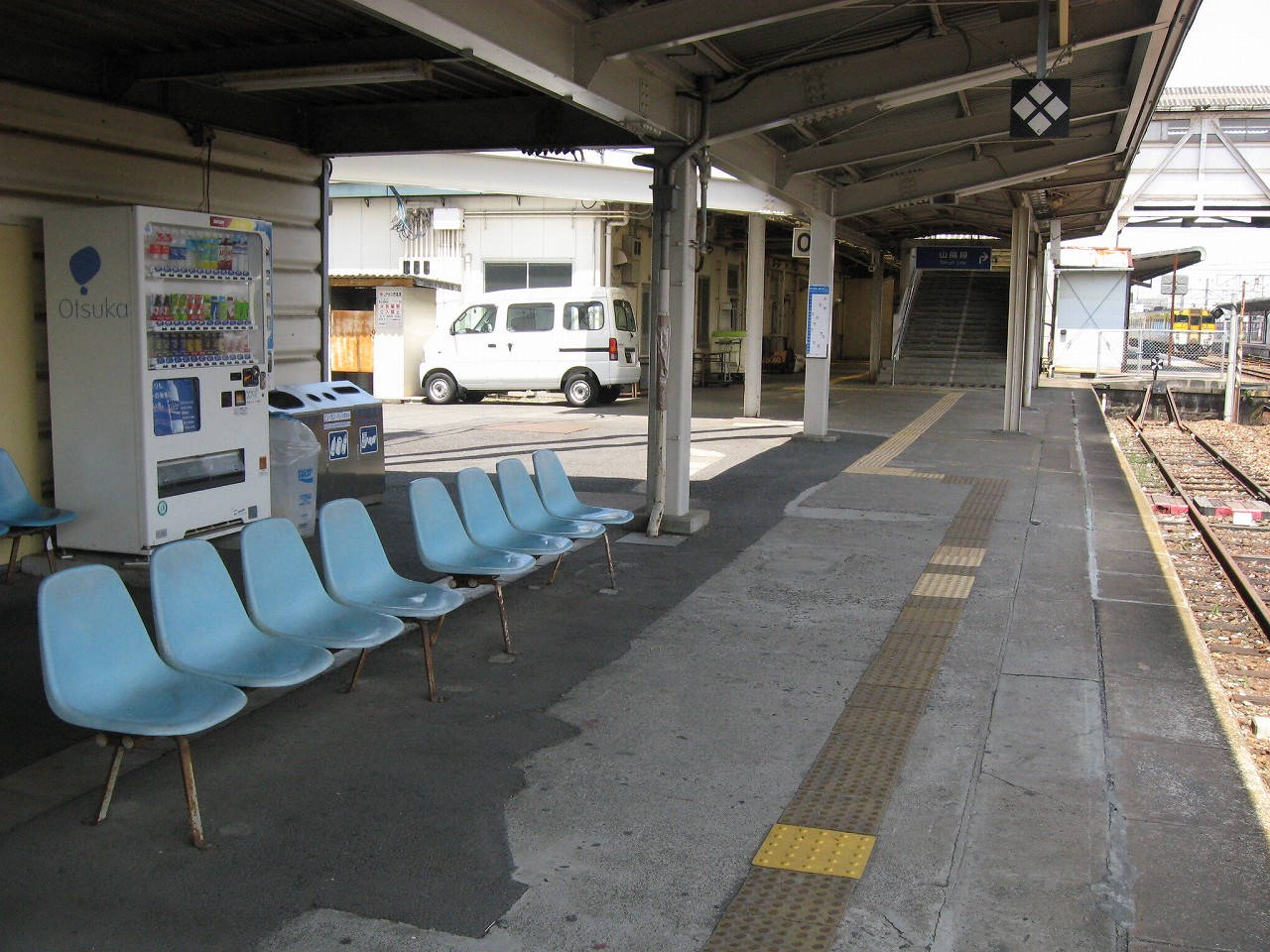 長い陸橋を渡って、工場側の駅舎にやってきた。ブロック積みで、あちこちに駐車場と貨物があり、窓口には一人が詰めていて、いかにも興味なさげに、けれども気さくに、きっぷを見て客を通していた。極めて質素で、現状にちょうどよいもののようだった。