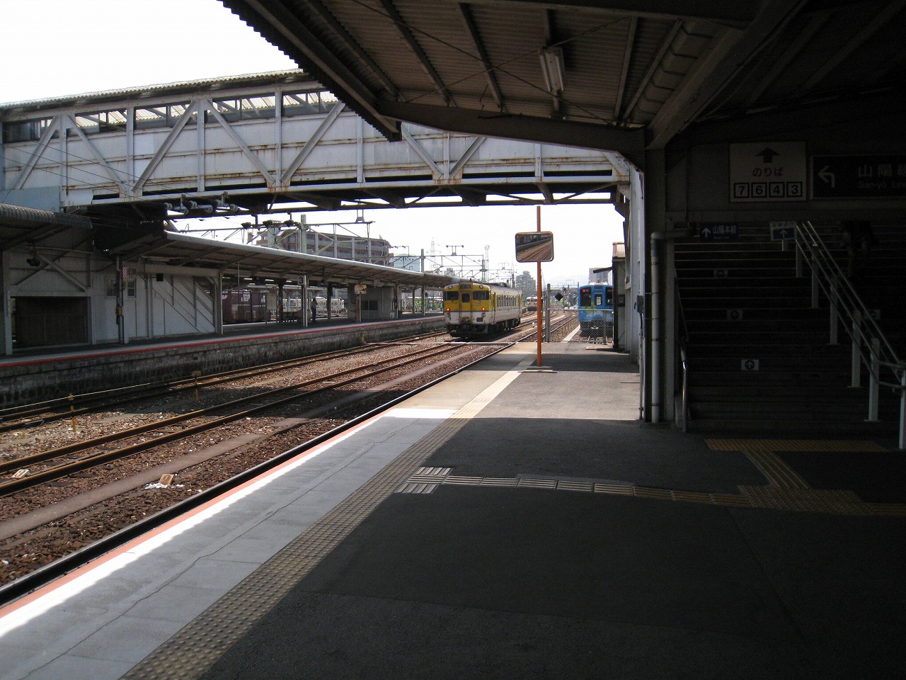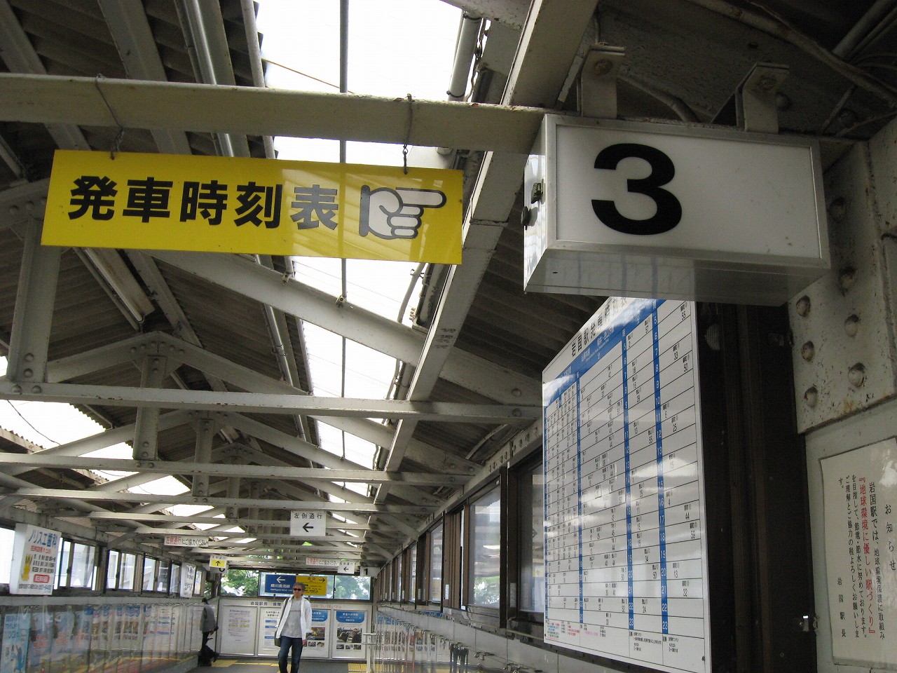岩国駅は大きな駅だけど、岩がちというより、貨物がちだった…さまざまな国鉄時代の車輛がカラーリングを変えて滞留もしている。気動車も大活躍だ。なんともホームの見通しの悪さを感じつつ、跨線橋に上がろうと階段を上ると、蹴込みが木材で、その跨線橋も、鋼鉄と剥げかけた白塗りの木材だけでできたものだった。山陽本線はなかなかやるなぁと思い感心しつつ、昇る。