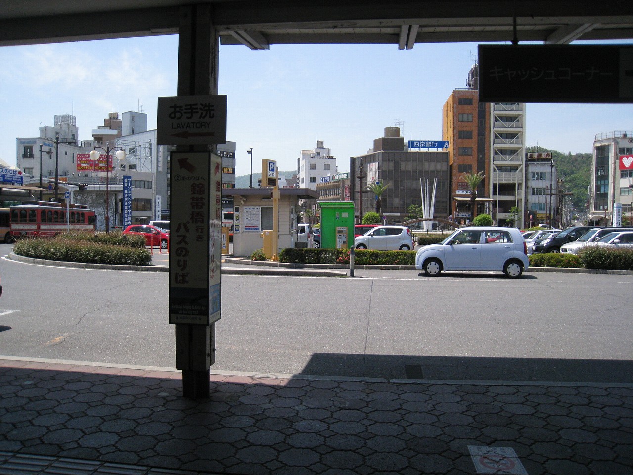 こんなに遠いところには鉄道でしか来ないものだから、私のイメージとしては岩国は、むかし風情の時計付きの駅舎があって、昭和ばりのロータリーや看板があって、その地域のミヤコとして三々五々人が歩いている、そんなイメージだ。着物を着た人もいるかもしれない。少なくとも2000年代はじめのころは、こうした地方都市での和装はそんなに珍しいものでもなかったとと思う。