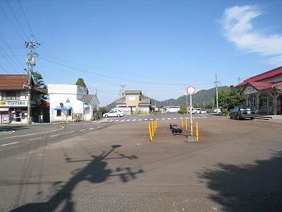 突き出した車寄せの、切れ長の目のような漆の艶に、その客でないことを内心申し訳なく思いつつ、広場にいざり出たけど、浦富海岸はこちら、浦富海岸バスのりば、などと想像していたしつこい案内は見当たらない。属性は山よりの町で、肩透かしだった。住宅地風の街で 銀行が目立っていたから、県都以東の中心部になるのだろう、それにその域でこんな広場やタクシーを持つ駅は、唯一ここしかないし。