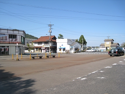 東浜方に見た駅前広場。なんかあんなところでバスを待つのは不安だ。